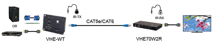 即可將 ( HDMI/VGA ) 訊號做延長,最遠可達 70 公尺,產品完全支援HD 1080p、4kx2k@60Hz、HDCP、紅外線。