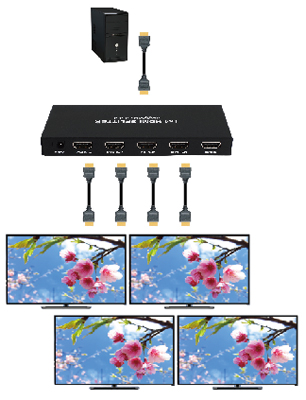 可以同步輸出 4 組 HDMI 影音訊號,適合需要高畫質數位影音同步播放的場合使用。