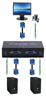 - ( VGA+Audio ) 影音訊號切換器,可以使用自動或手動的方式 -切換 2 組 ( VGA+Audio )