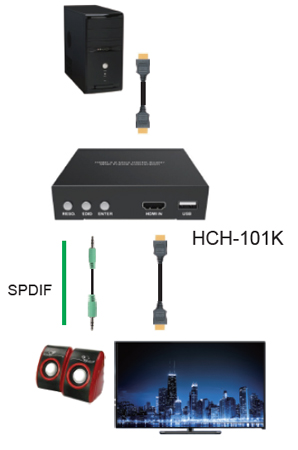 ● 支援 HDMI 音訊擷取功能,輸出數位音源 ( OPTICAL ) 或 類比音源 ( 3.5mm Jack )。